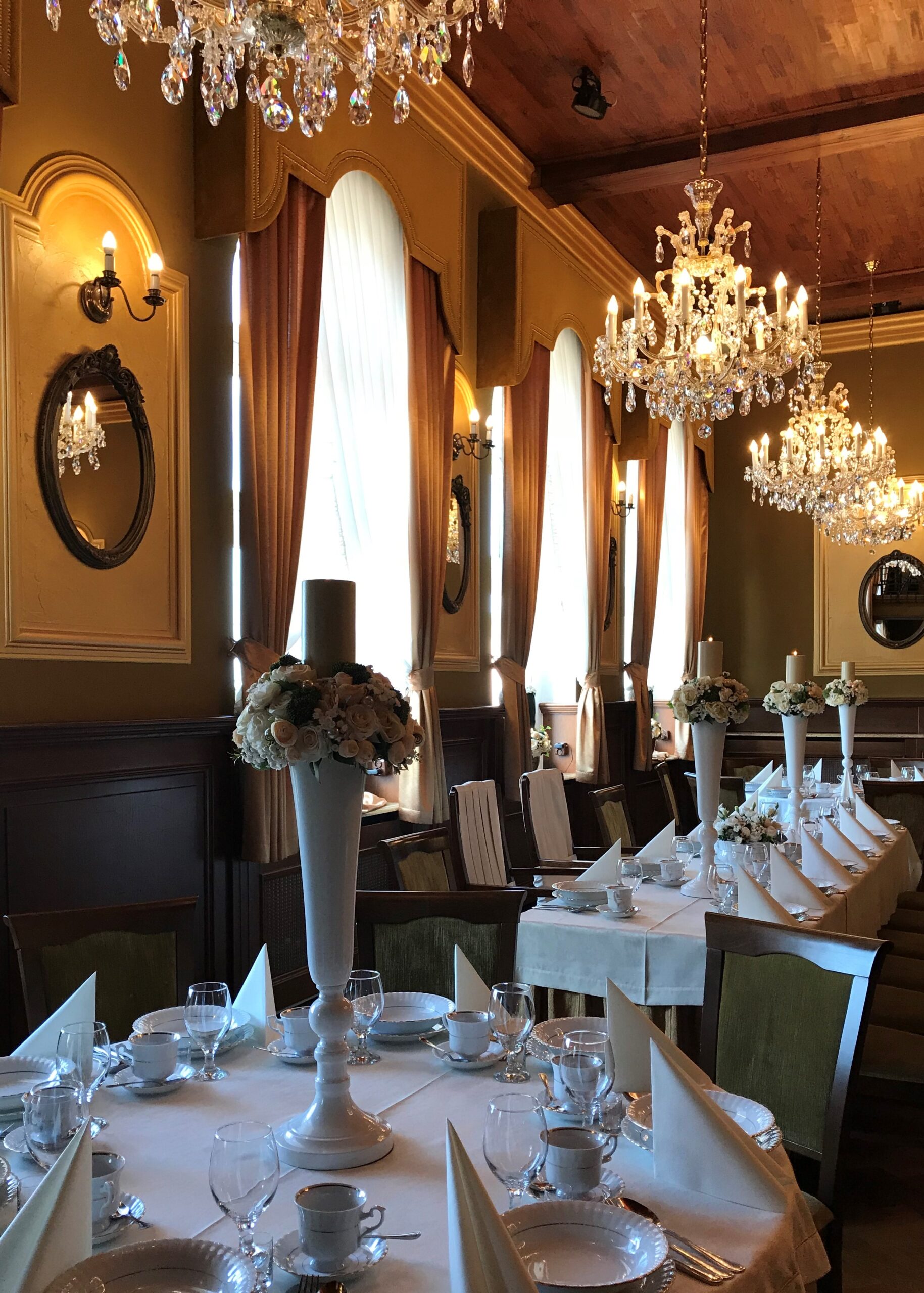 Blask kryształowych żyrandoli, dopracowana aranżacja stołów i harmonijne wnętrze tworzą tło dla najważniejszych momentów: pierwszego toastu, rodzinnych rozmów, wzruszeń i śmiechu.